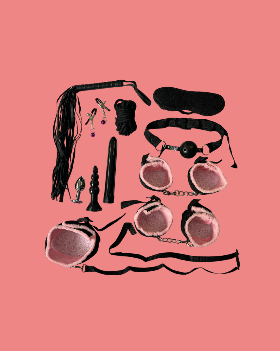 BDSM Set de 11 piezas ROSA con plug anal y vibrador